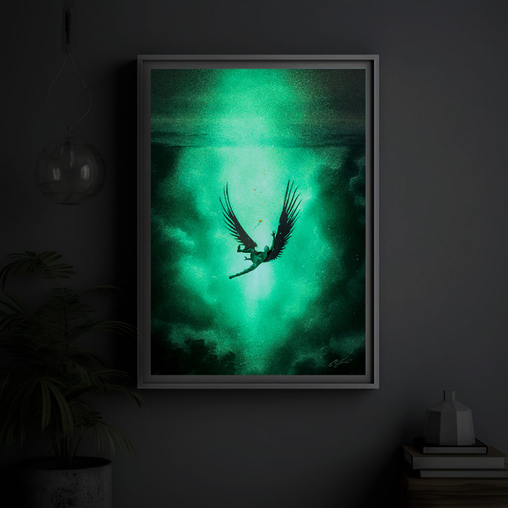 The Ghost Series focuses on human feelings and emotions, and some are even embellished with 3D elements that further connect the collector with the experience of Crisco’s art.